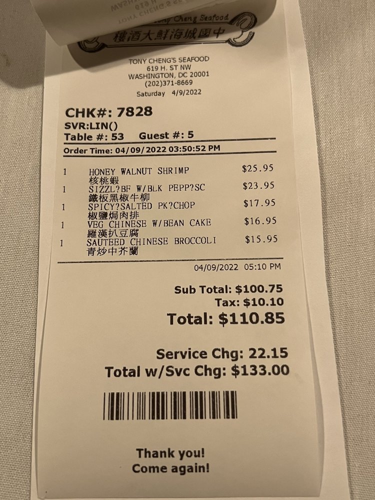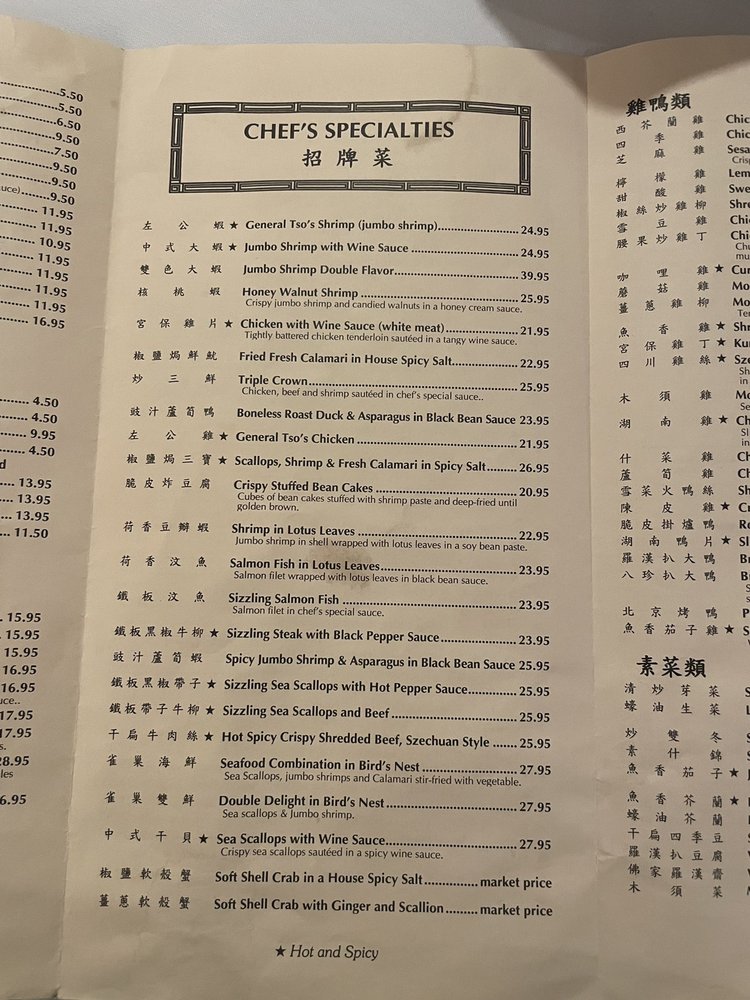 Tony Cheng Seafood Restaurant, situated in the heart of Washington, DC, offers a wide array of delectable seafood dishes. From appetizers like Crispy Crab Wontons and Marinated 5 Flavor Beef to soups like Hot and Sour Chicken Soup and Mushroom and Bean Cake Soup, the menu is a seafood lover's dream. Their tofu dishes such as General Tso's Tofu and Combination with Tofu cater to vegan preferences as well. With a mix of traditional Chinese flavors and modern twists, this restaurant has received rave reviews for its consistent quality and great service. Guests praise the warm atmosphere and diverse menu options, making it a must-visit spot in Chinatown. Whether you're a fan of Peking duck or honey walnut shrimp, Tony Cheng Seafood Restaurant promises a delightful dining experience that will keep you coming back for more.